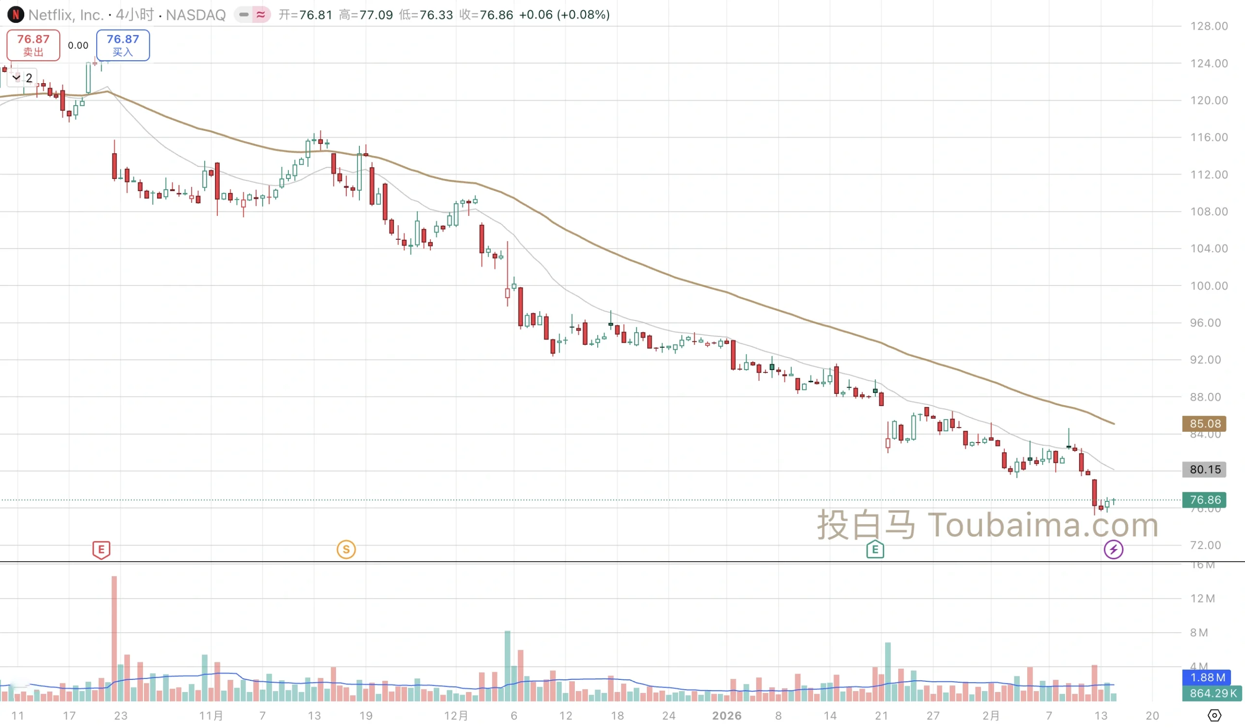 - 市场心理:股价低于$30表明市场仍存在疑虑,担心派拉蒙的敌意收购可能失败,或者监管机构可能否决所有交易。然而,股价并未跌至Netflix报价以下,说明投资者已经给Discovery Global的分拆价值打了极大的折扣,主要依靠并购溢价支撑股价。